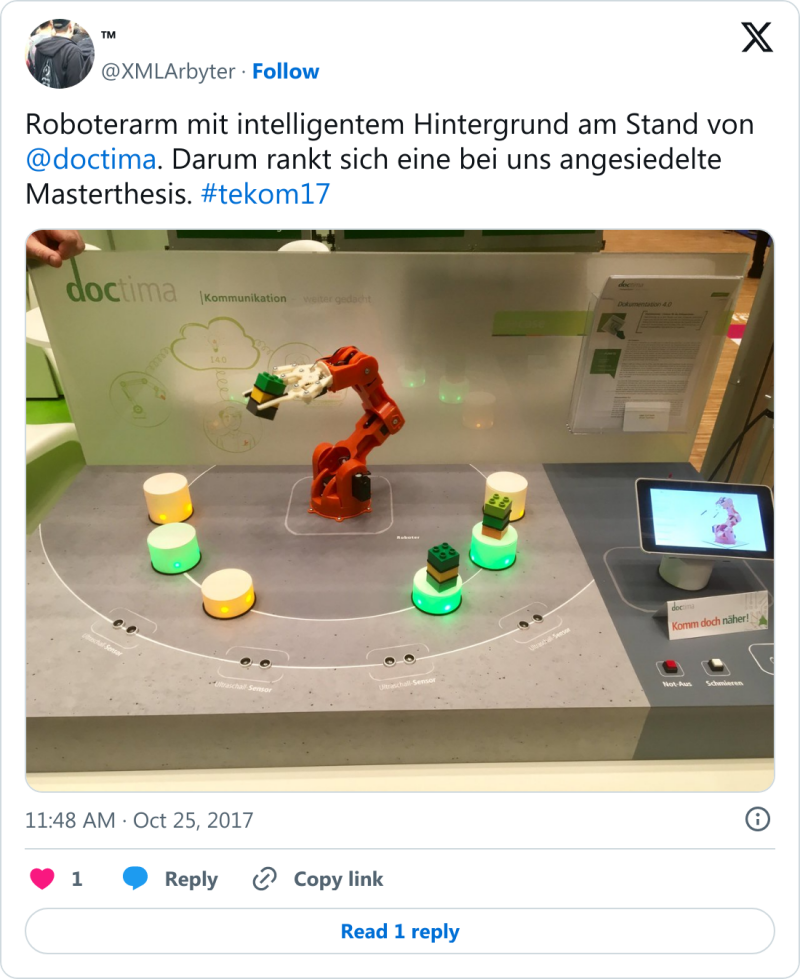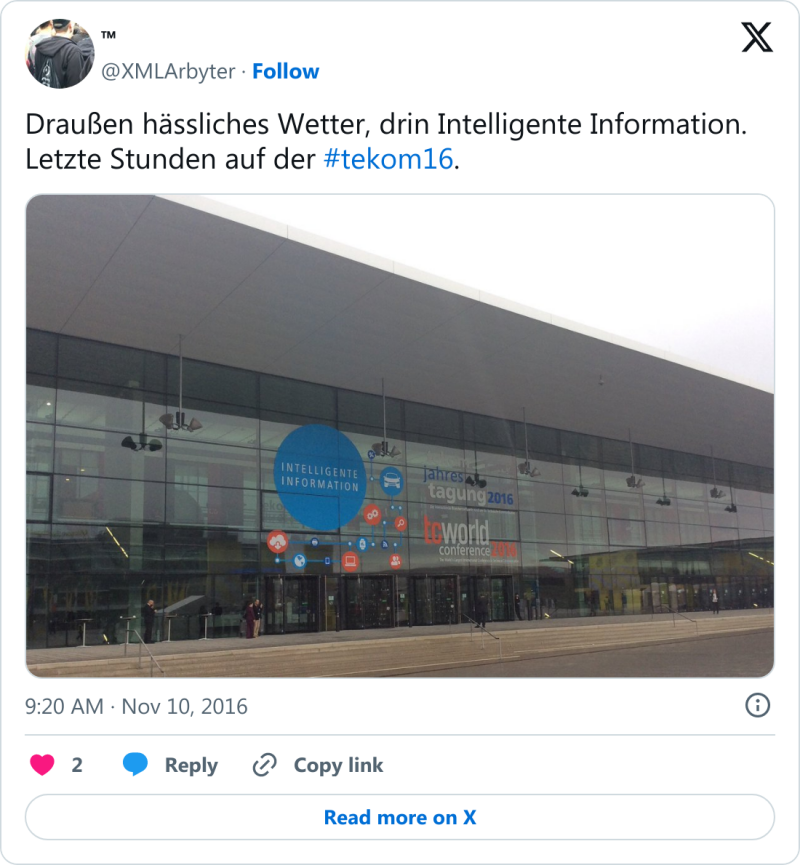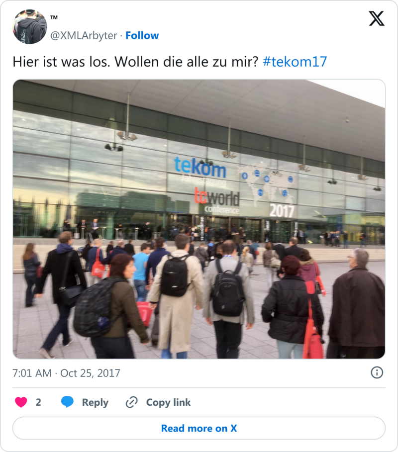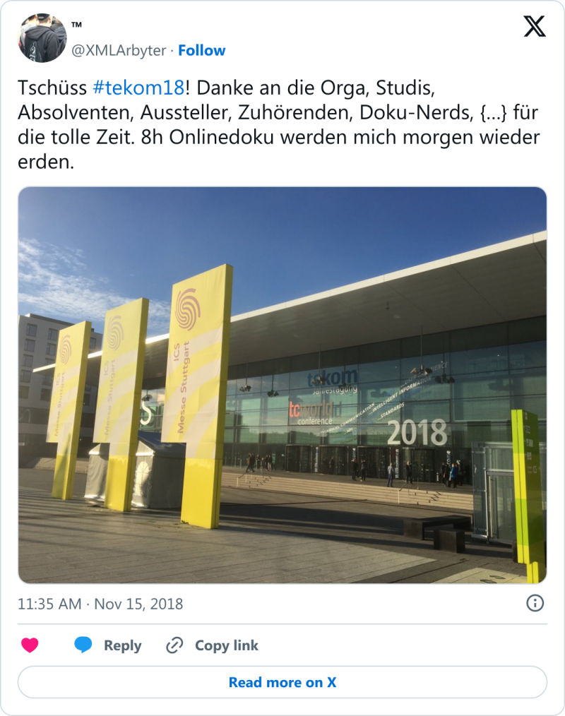 #tekom18: Auch die tekom-Jahrestagung 2018 ist nun Geschichte und es war wieder eine besondere Veranstaltung. Zum fünften Mal auf der Messe Stuttgart (ICS) ausgerichtet, bot sich die übliche Klassenfahrt-Atmosphäre im Umfeld von Technischer Redaktion und Informationsentwicklung. Ich hielt zunächst einen Kurzvortrag auf der Arena Lernmedien zum Einplatinencomputer »Calliope mini«, der im Sommersemester 2018 im Rahmen eines Kurses mit dem Fokus auf JavaScript-Programmierbarkeit ausprobiert werden konnte.